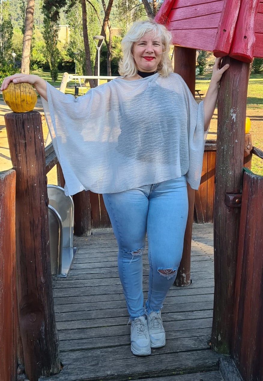 Capa para ceremonia de tejido transparente con brillo de lurex. Talla única.